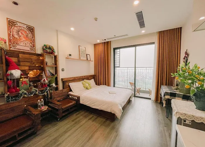 Offering spa facilities such as an indoor pool, Apartment 1Br-Fl22Th-R103 Building-Vinhome Ocean Park is situated 3.4 km from Cong vien Mua Xuan. One of the highlights of this apartment is a patio, which allows guests to take in garden views.